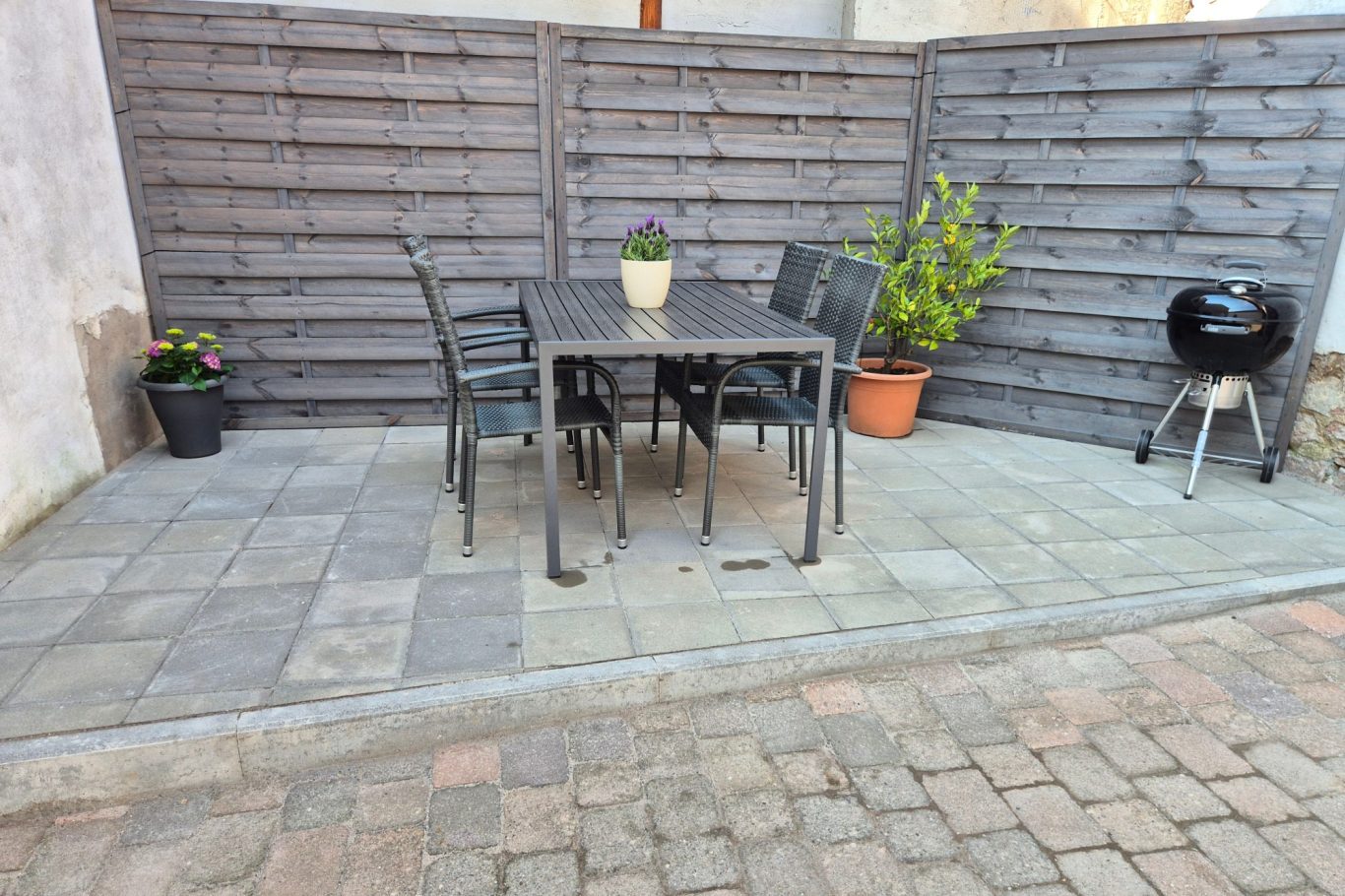 Die Terrasse der Ferienwohnung lädt zum gemütlichen Entspannen ein. Hier können Sie bei einem guten Glas Wein die Ruhe genießen, ein spannendes Buch lesen oder den Tag entspannt ausklingen lassen. Für gesellige Abende steht zudem ein Grill bereit – perfekt, um gemeinsam köstliche Mahlzeiten unter freiem Himmel zu genießen.